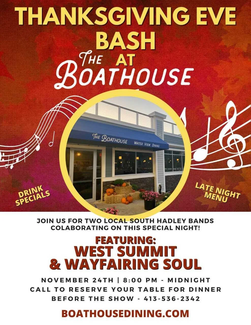CALL TO RESERVE YOUR TABLE FOR DINNER BEFORE THE SHOW - 413-536-2342